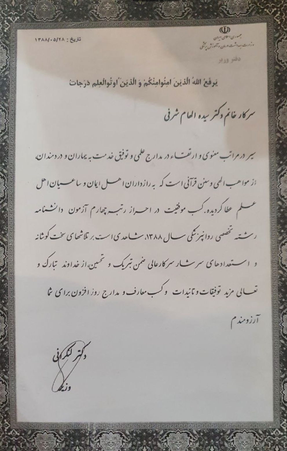 - متخصص روانپزشکی (Psychiatrist)، رتبه برتر بورد تخصصی