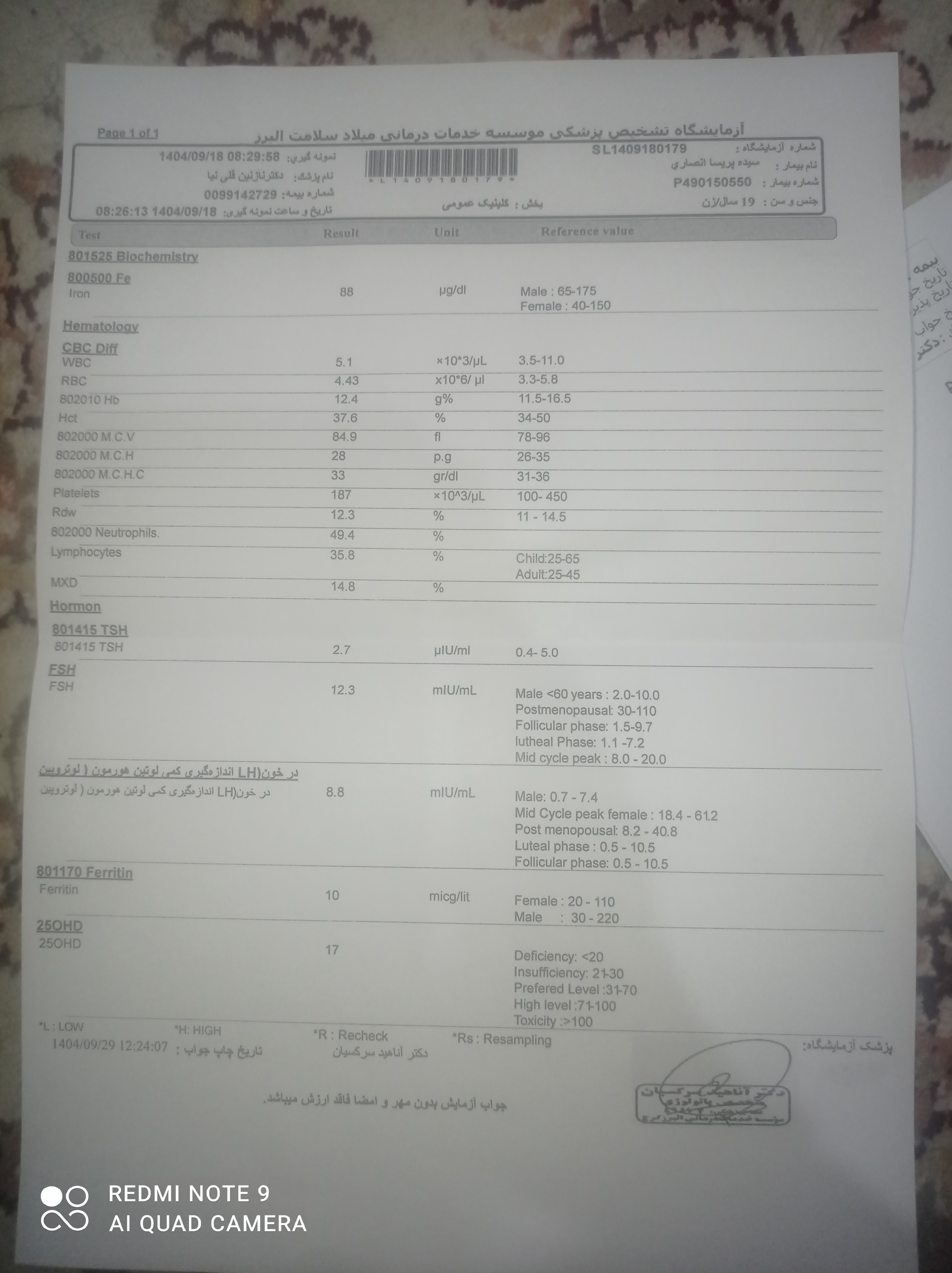 سلام پریسا جان. خیلی مهم است که fshرا در چه روزی از سیکل ماهانه انجام داده باشید